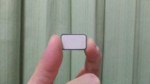 実際の大きさはこんなもんで、裏面には両面テープが貼ってあるから好きなところにペタッと貼るだけ。