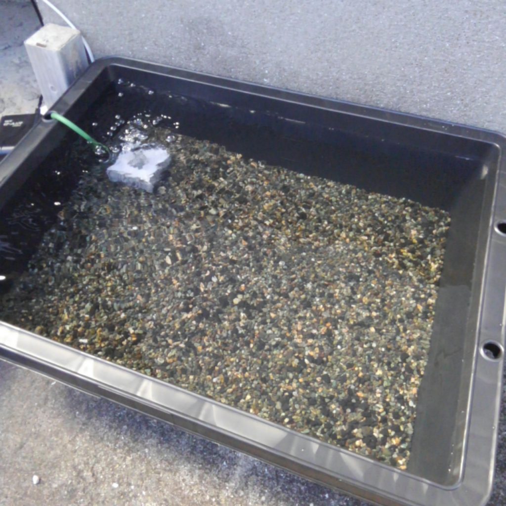 ブログにも書いてるけどそこでコンテナでミニトマトを育ててるんだけど、さらにその横で今回、引っ越してきて初めての金魚を飼うことにした。